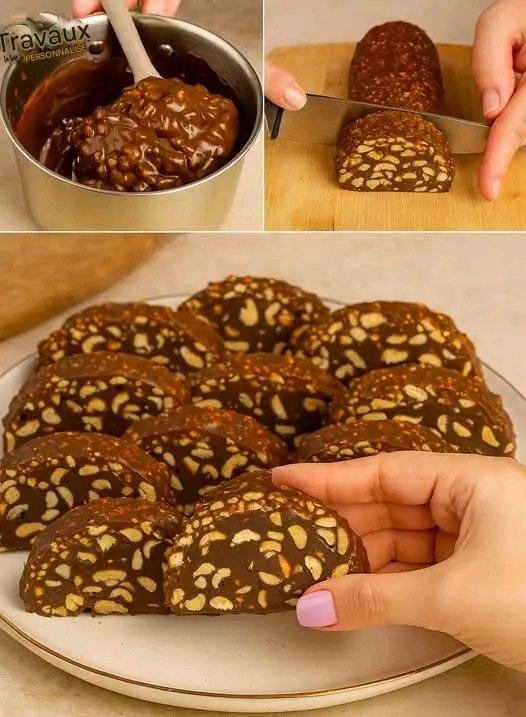 Je l’avoue : j’associe le salami au chocolat à mon enfance, à ces desserts du dimanche préparés avec tout ce qu’on avait sous la main. Biscuits émiettés, beurre à profusion, chocolat noir fondu partout… c’était bon, certes, mais avouons-le : c’était une bombe. Plein de calories, de sucre, de culpabilité. Et ça disparaissait toujours trop vite.